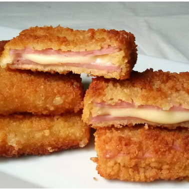 Sándwich" de jamón cocido y queso, rebozado y frito